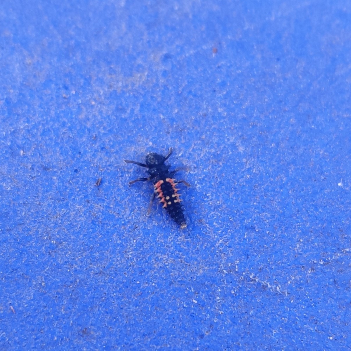 Larven: schwarz- bis blaugrau mit Borsten, eine Wachsschicht schützt die Larven zudem vor Ameisen