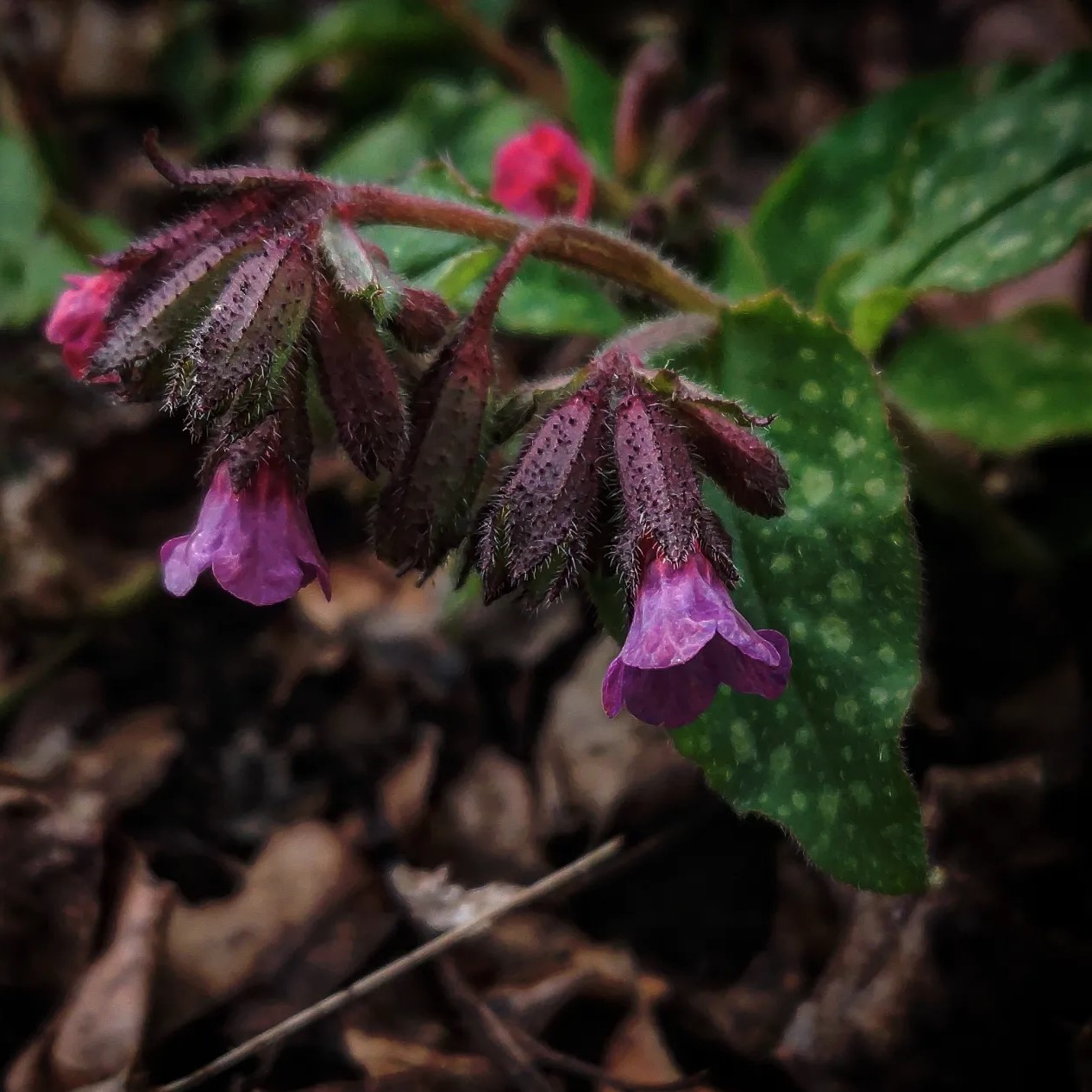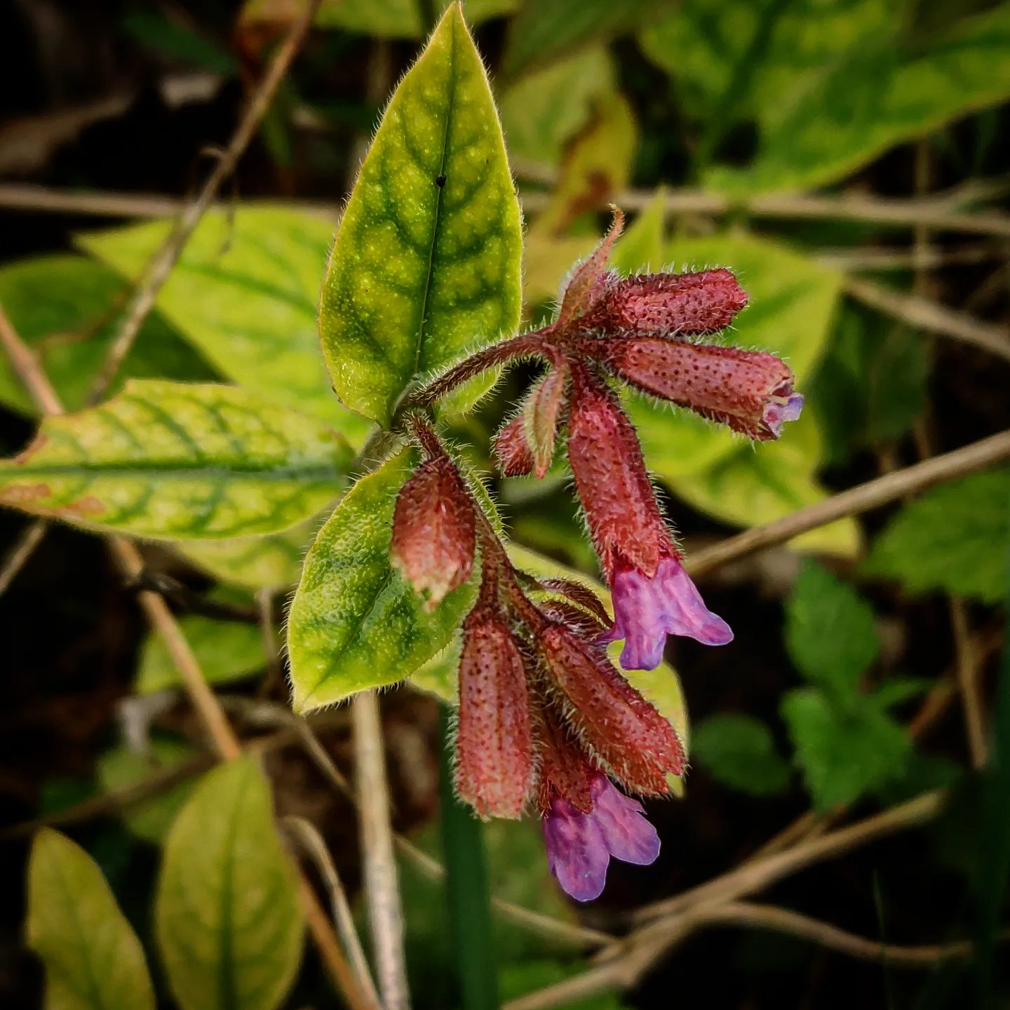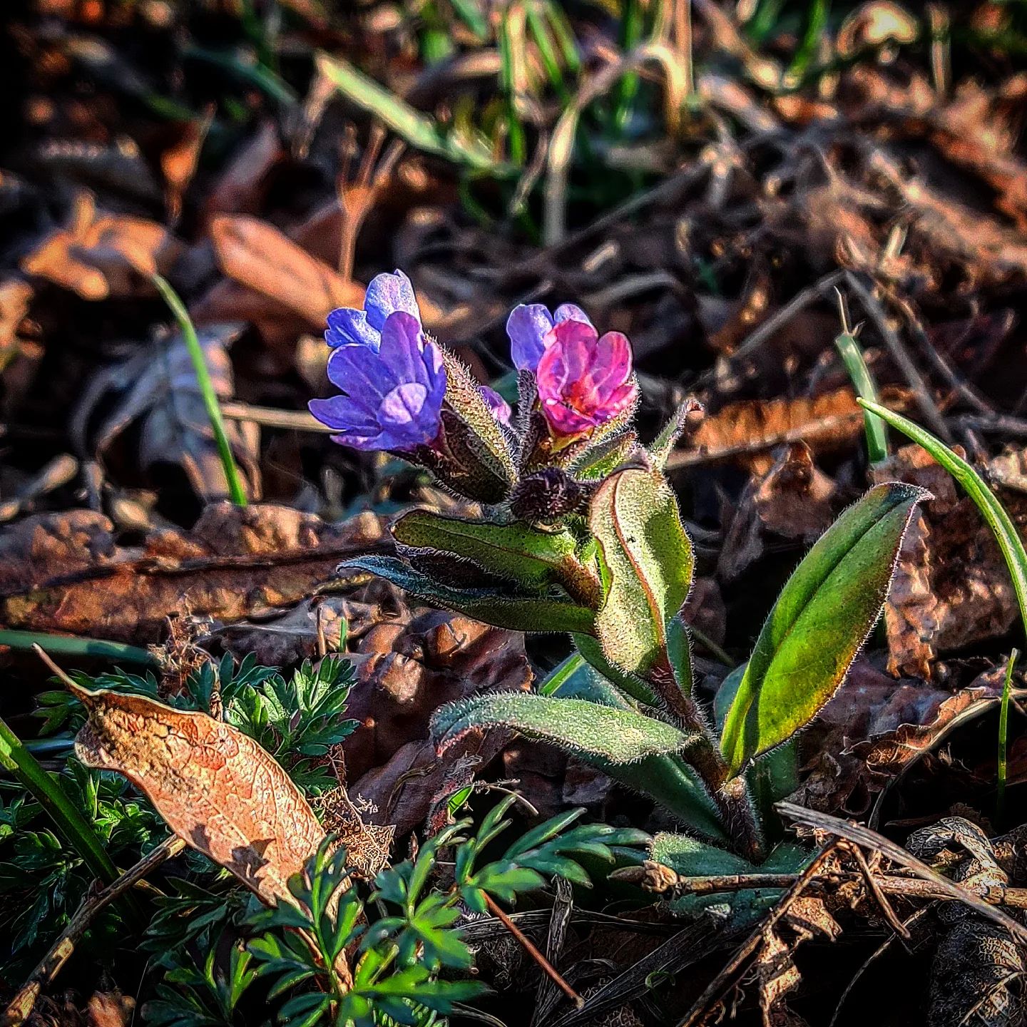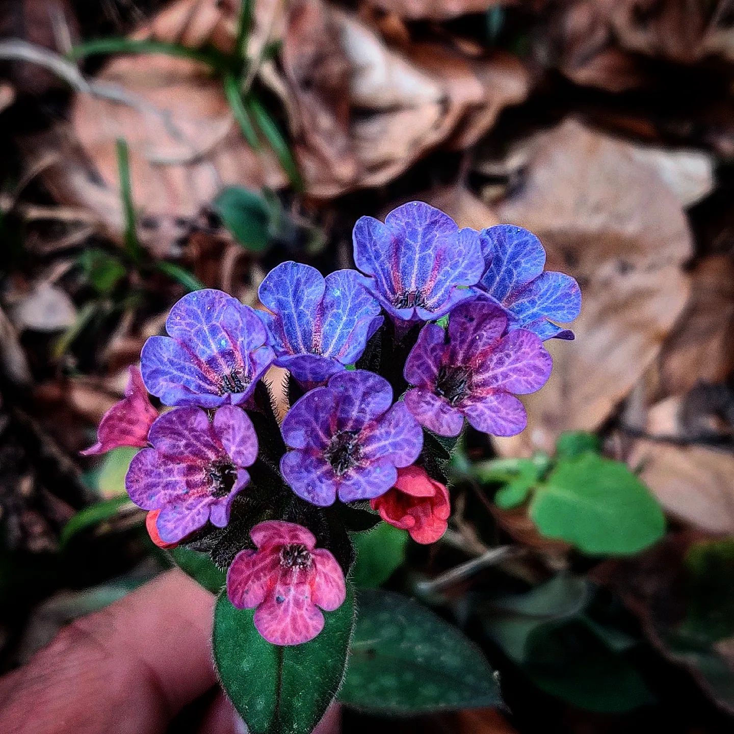 Farbe der Lungenkraut-Blüten wechselt von rötlich bei jungen Blüten über violett bis hin zu blau bei älteren