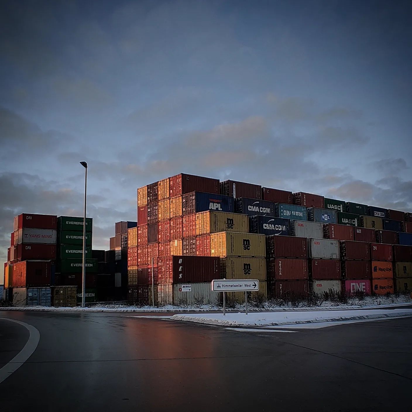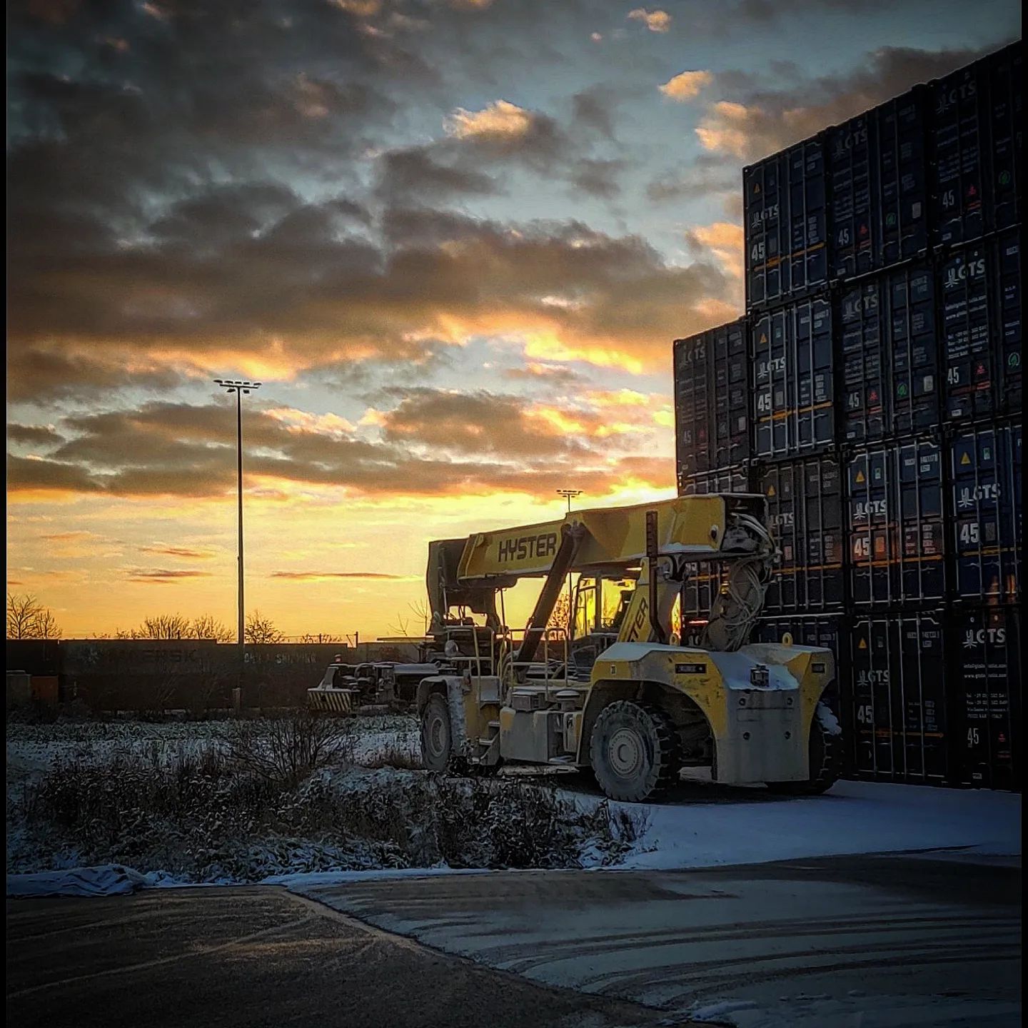 Beladung: 3 Portalkräne, Hyster Containerstapler